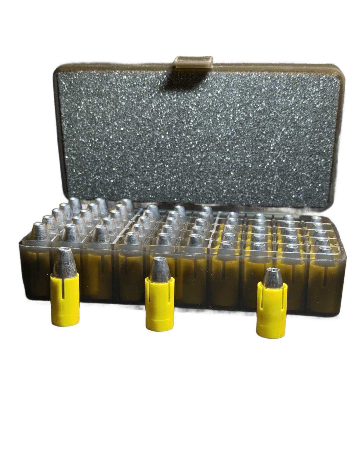 50 Caliber Boat Tail Sabot Sampler incorporates Harvester Boat Tail High Pressure Crush Rib sabots (yellow) and our newest solid lead .451 boat tail bullets. Harvester Crush Rib sabots are precision engineered and manufactured to exact specifications and offer superior accuracy when loaded with No Excuses Boat Tail bullets. The sampler contains 15 each of the 400 grain, 15 each of the 350 grain and 20 each of the 300 grain boat tail sabots. Packaged in a convenient, reusable plastic box protecting them from damage. 50 per box.