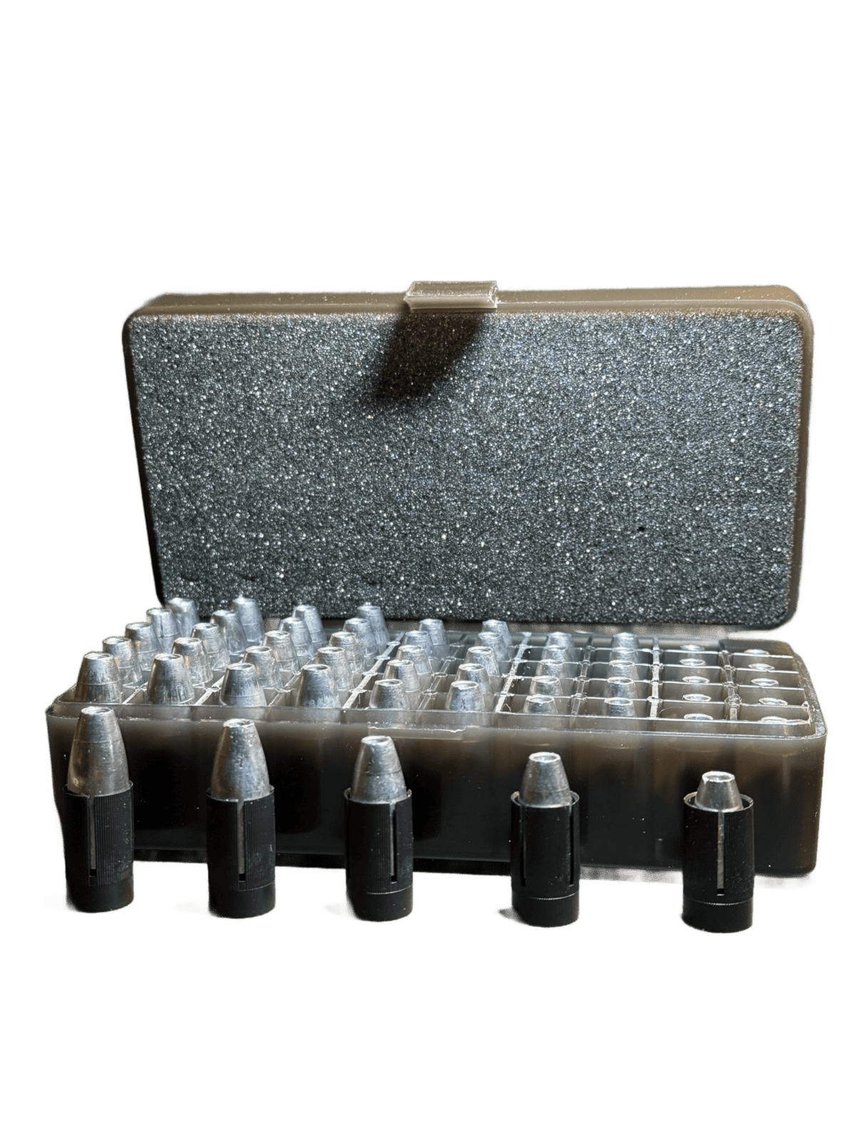 50 Caliber Flat Based Sabot Sampler incorporates Harvester High Pressure Crush Rib sabots (black) and our newest solid lead .451 flat base bullets. Harvester Crush Rib sabots are precision engineered and manufactured to exact specifications and offer superior accuracy when loaded with No Excuses Flat Based bullets. The Sampler contains 10 each of the 435 grain, 10 each of the 400 grain, 10 each of the 350 grain, 10 each of the 300 grain and 10 each of the 250 grain .451 diameter flat based bullets. Packaged in a convenient, reusable plastic box protecting them from damage. 50 per box.